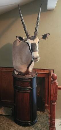 For Sale: Republic of South Africa, Gemsbok pedestal mount. This professionally crafted mount includes the pedestal. This mount is located in Omaha Nebraska. $1,200.00 Call or text Joe at...