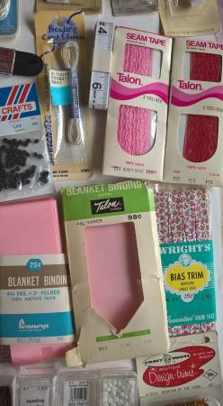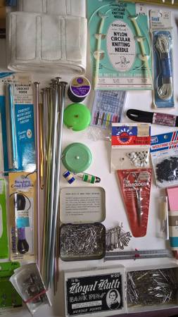 First photo show items all together Following photos show closeups of various groups All in new or like new condition Sewing knitting crocheting items such as knitting needles, Pleatmaster no twist...