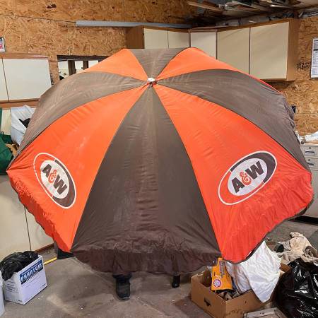 Amazing vintage from A&W root beer. This was actually used at the drive-ins. It has a few rips from being outdoors, but the color and logos are still there. Over 6 feet in diameter and includes...