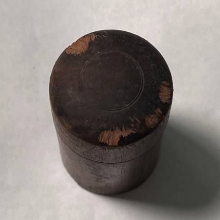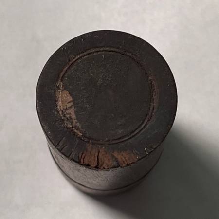 Cool antique item. A few small chips in the top and bottom, but no cracks. 2" high, 1" diameter