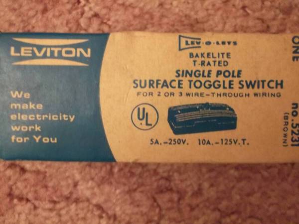Single pole surface toggle switch New old stock Good heavy duty contacts Made by Leviton (USA made ~ not Chinese junk) Comes in original box $10 (this is the last one)