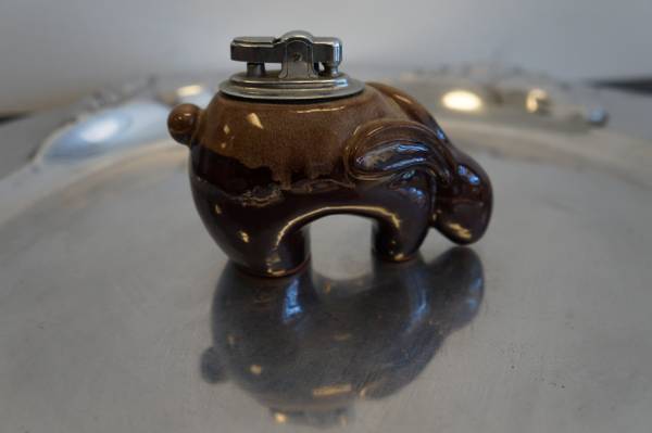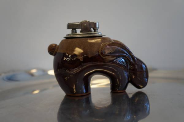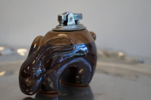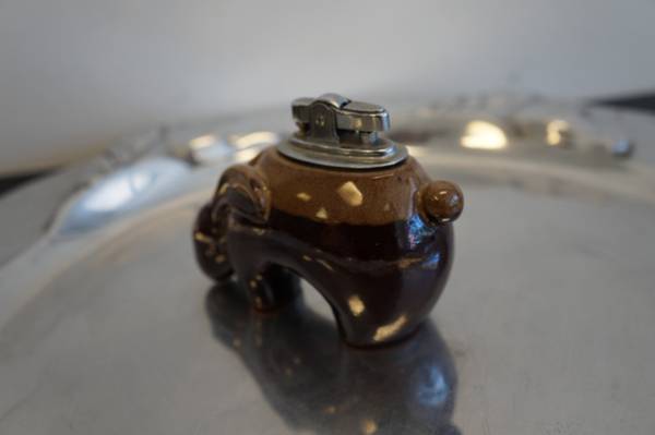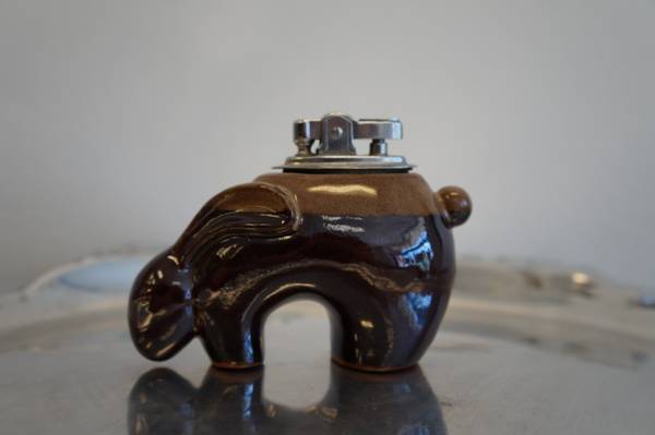 This is a really cool and unique lighter made of glazed pottery in the form of a southwestern jackrabbit. It's in excellent condition, no chips or marks on the rabbit. The lighter mechanism works fine, will need new flint and fuel to produce flame. It's about 3" - 4" long.