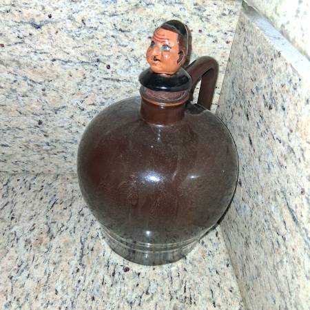 No cracks no chips has the original cork head which portrays a Monk. 1930s This is a Whiskey ceramic jug it has a music box on its bottom. I see no touch ups in the paint. Very nice antique. $40...