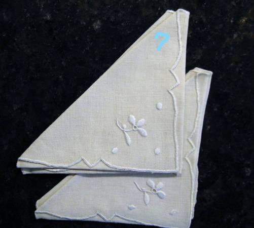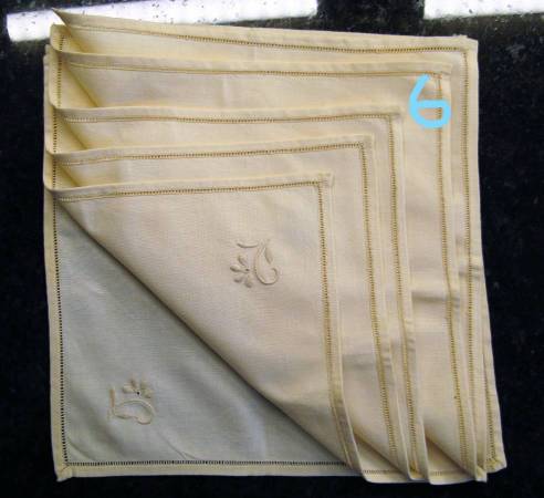 {}These linens belonged to my mother and grandmother {}Respond early for the best selection - most items have NOT been posted {}Cash only, please 4)three open embroidery linen napkins - never been...