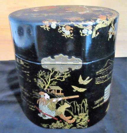 Hinged Japanese Black Lacquer Box (Round) - antiques - by owner -...