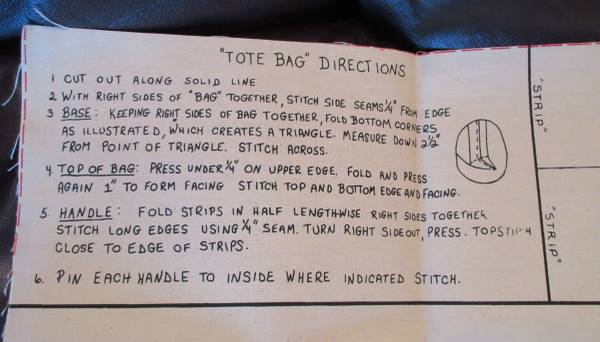 {<>}This is a cut and sew tote bag kit from the late 1940s/early 1950s {<>}Reltex is a light, canvasy material {<>}This sheet of fabric measures 24-1/2" wide x 35" long {<>}I...
