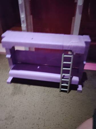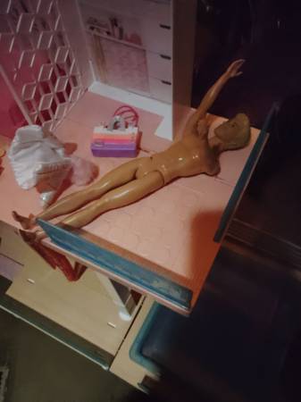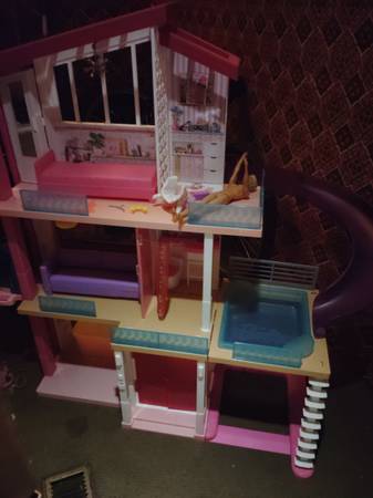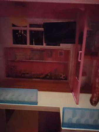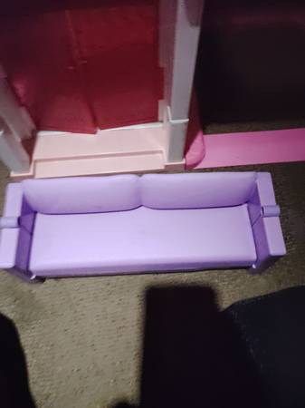 Comes with couch that turns into bunk beds and another couch. The toilet makes flushing sound. Comes with ken Barbie. In excellent condition. 200 brand new. The elevator moves up and down.