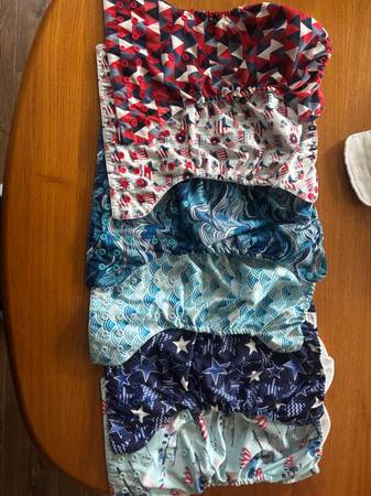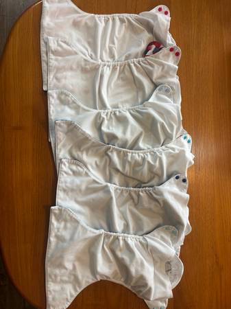 Lot of 6 Mama Koala cloth pocket diapers. Clean, washed in Norwex soap and never dried. Elastics in great shape. Fits 3 sizes. Includes 6 microfiber mama koala inserts