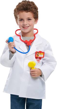 Includes a doctor’s coat, construction vest, firefighter jacket, 3 occupation badges, and accessories.