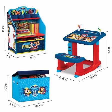 1 Draw & Play Desk, 1 Art & Storage Station and 1 Fabric Toy Box