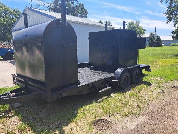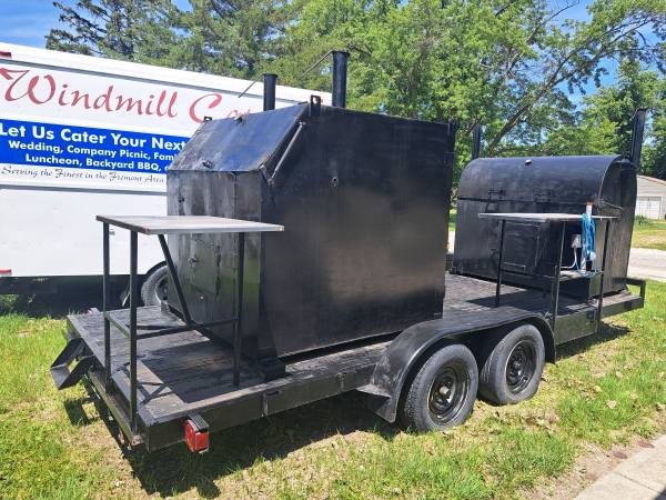 This is a lean mean BBQ money making machine, barrel smoker can do whole hogs or around 200lbs of pork butt's at a time, the rotisserie smoker can do 36 racks of ribs or 70lbs of country style ribs at a time, new tail lights and paint last year, this smoker has a oven on the back side of the rotisserie smoker that can hold 8 pans, this smoker is ready to go