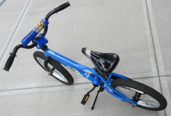 ]=[This is a girls 16" Piranha Tailspin bike ]=[Painted Royal Princess Blue ]=[Manufactured by Cycles Force Group ]=[Like-new condition ]=[Alloy rims ]=[A Christmas present? ]=[Cash only, please