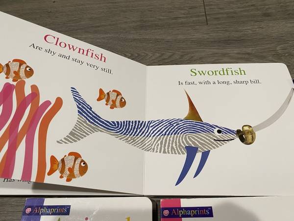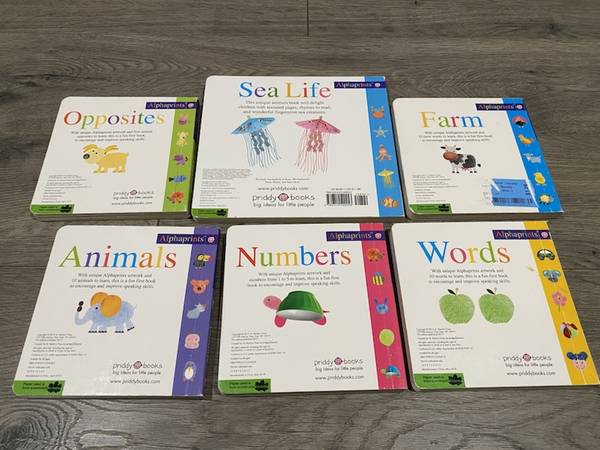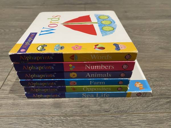 ♥ ♥ ♥ ALPHAPRINTS BOARD BOOKS ~ SEA LIFE, WORDS, NUMBERS, OPPOSITES, ANIMALS, FARM 6 Beautiful Board Books! Excellent Condition Comes with the books in the pictures Pick up 192nd & Harrison area...