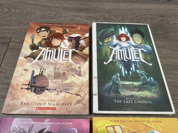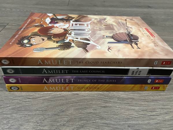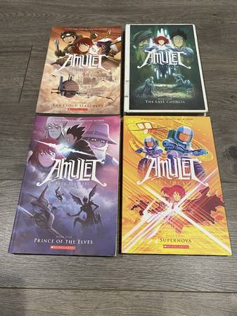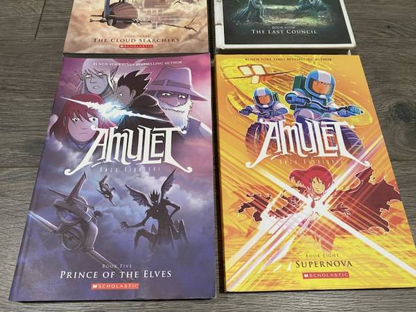 AMULET: By KAZU KIBUISHI #3, #4, #5, #8 Graphic Novel 3 are Paperback Books & 1 is Hardcover Check out all the other books I have for sale Pick up 192nd & Harrison area Text