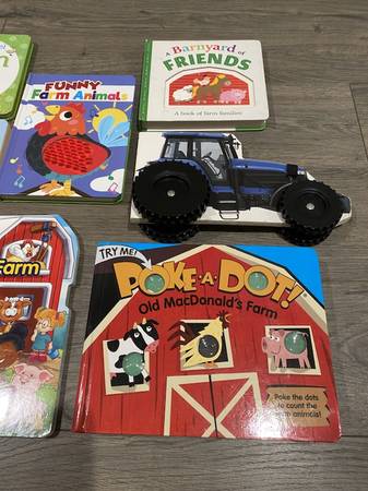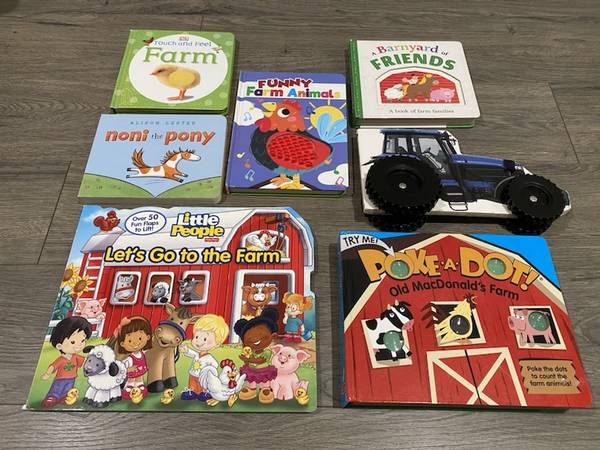 ♥ ♥ ♥ FARM 7 BABY BOARD BOOKS ~ FARM ~ TRACTOR ~ ANIMALS Excellent Condition Tractor with Wheels , POKE A DOT, TOUCH & FEEL Excellent Condition Pick up 192nd & Harrison area Text