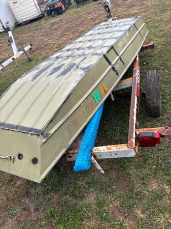 Here is a used flat bottom boat. It is a 1968 Appleby brand. It is 12ft long. It has current registration. Boat only no trailer. $300