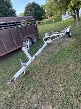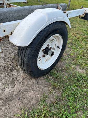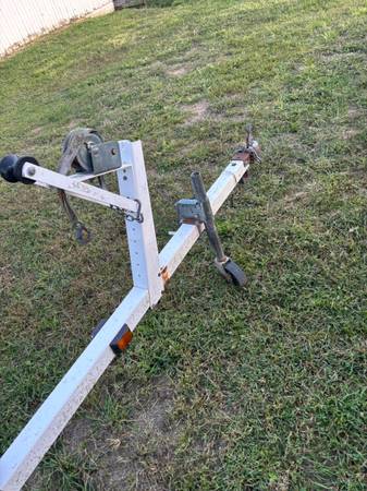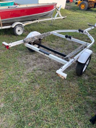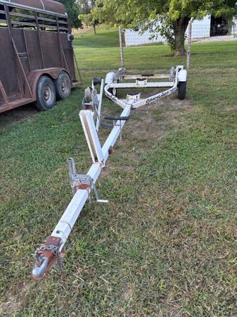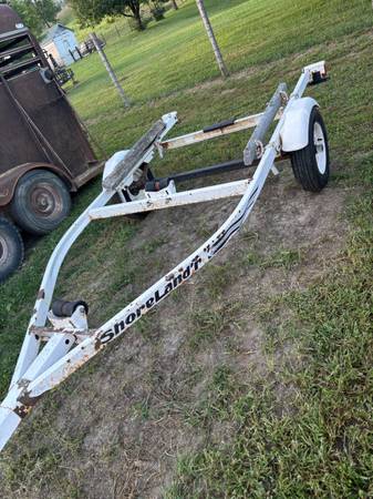 Here is a used shore lander boat trailer. I believe it will carry a 16/17ft boat. It has two new tires on it. It will need new lights. Standard 2” ball. Bill of sale only. $400