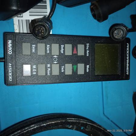 I have a collection of working wheel pilots. A pair of NEMA compatible WP5000 Navico / Simrad auto pilots and a HP5000 hand programme/remote controller. 3 belts. Assorted male and female plugs. Pedestal mounting bracket. Thumb release belt clutch parts. All manuals for the above. Please see attached pictures. Will ship. Text is preferred.