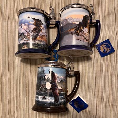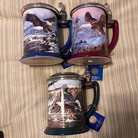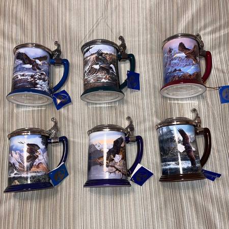 Set of 6 Eagle tankards designed by Ted Blaylock from The Franklin Mint. All in pristine condition with no issues. Kept in a curio so they are clean and dust free. Smoke free, pet free home. $25...