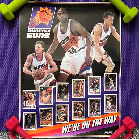 -93-94 team poster. Measures 20x28. These were given out as part of the library summer reading program. Laminated and in excellent condition