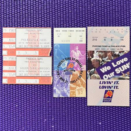 -Ticket Stubs from 3 games. One from 1993, another from 1995. The nice pair is from the 12/21/1985 game against the 76ers. In '85, Barkley was with the Sixers playing against his future team.