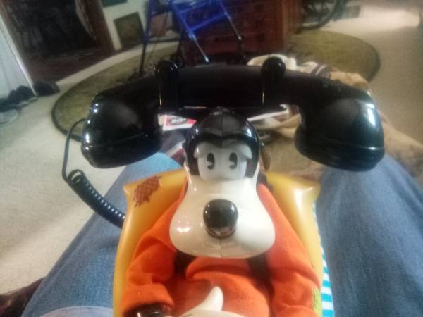 LICENSED BY WALT DISNEY ALL GOOD AND IN WORKING ORDER WE HAVE HAD GOOFY FOR AROUND 30 YEARS OR MORE. HE IS A WORKING TELEPHONE. AND HE WILL TALK TO YOU. HIS HEAD RAISES AND LOWERS AND HIS MOUTH...