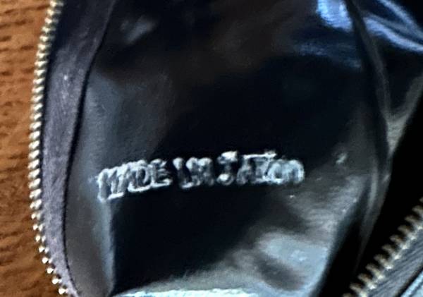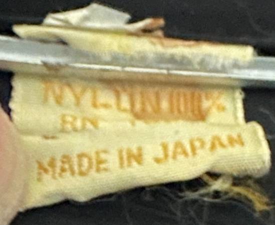 Up for sale is a nylon umbrella with a leather case and handle. The leather covered handle has a clip to open the umbrella and it works we. There is a “Made in Japan” stamp inside the leather case. A snap closure strap is attached. A tag is attached on the back side of the umbrella that reads “NYLON 100% RN 19071 MADE IN JAPAN”.