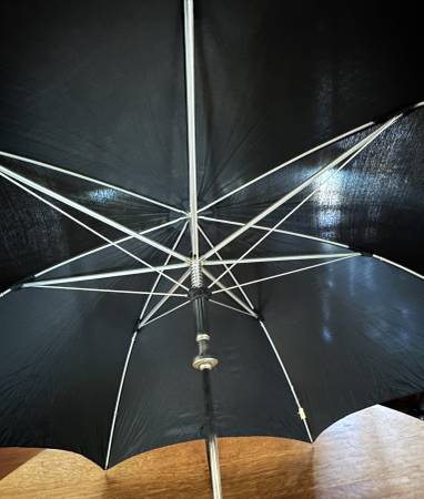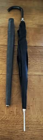 VINTAGE BLACK NYLON UMBRELLA LEATHER HANDLE AND CASE MADE IN JAPAN - $40 (Mondamin, IA)