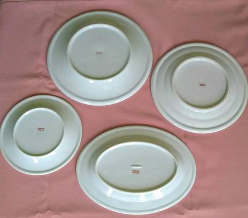 The pieces were never used and were in the original boxes and wrappers used to ship them from Japan to Omaha, circa 1970.
