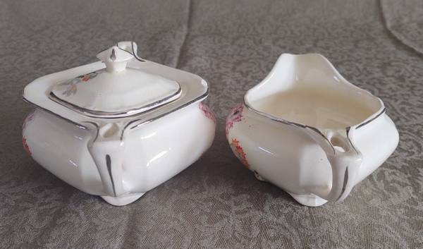 PARAMOUNT SHAPE. - - - Overall good condition, typical crazing and glazing wear given the age. ONE flat chip and some slightly dark areas on sugar bowl. Some “dots” seem to be under glaze, not detrimental. – SEE ALL PHOTOS