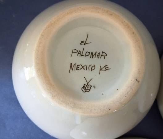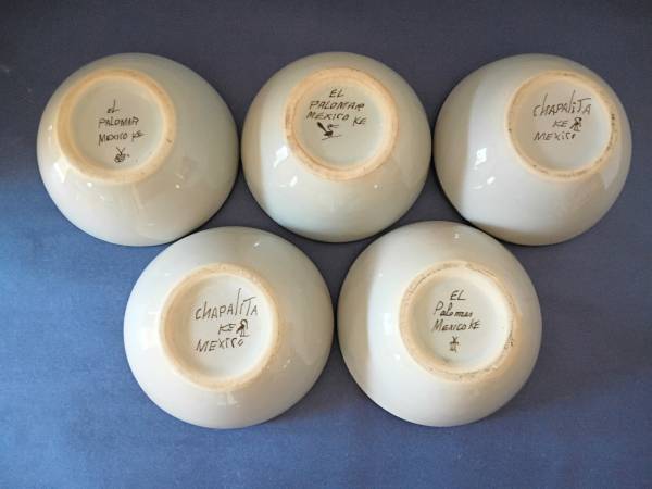 All of the bowls are sturdy and solid (even with the hairline cracks) with no chips or other issues. Each piece is signed with KE, El Palomar or Chapalita, Mexico, and the artist's cipher.