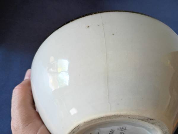Each bowl is about 6 inches across the top, 2.5 inches tall and weighs approx 1 lb 1 oz +/- 1 oz. The colors on one bowl have faded and two have hairline cracks (or glaze cracks - it's hard to tell). See pics.