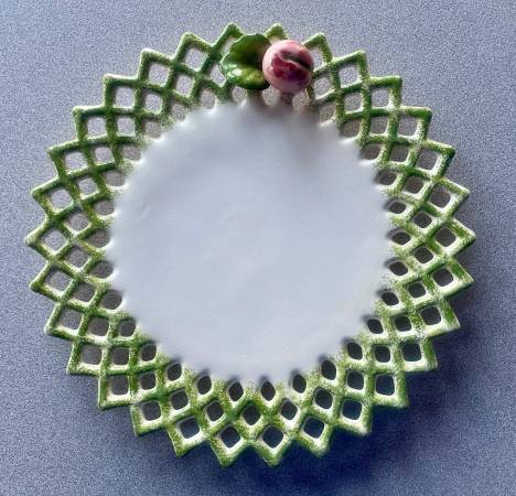 Vintage Paper Windows USA Serving Plate- $12 * Cream colored base * Green Lattice / lace detail * Apple adornment * No chips or cracks * 9.5 inch diameter Cash and Carry only! Please text: Location:...