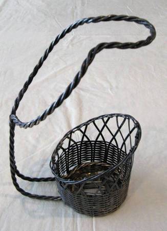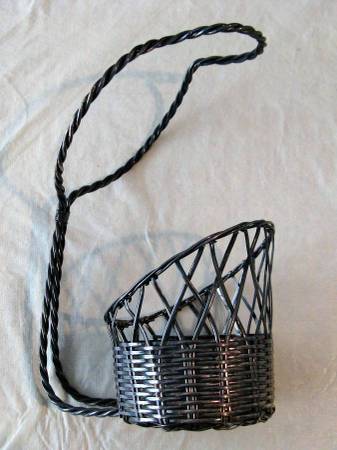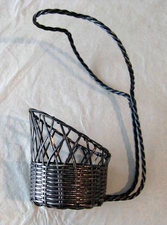 ~!~This older wine basket stands 9-5/8" high and will accommodate most any wine bottle ~!~The handle is composed of twisted silver wires while the basket is made from woven silver strands ~!~THE...