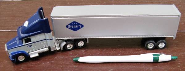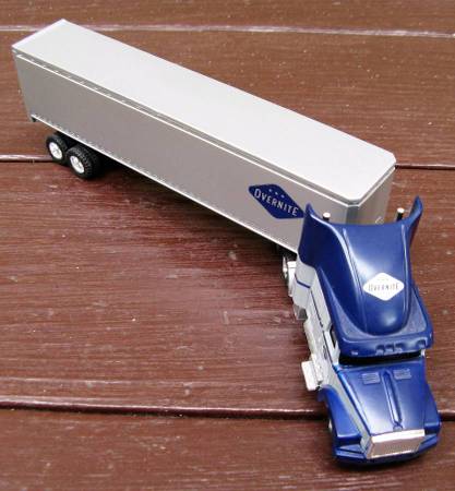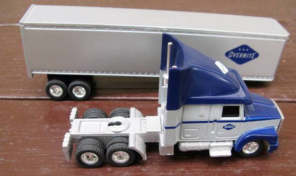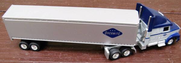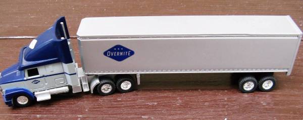 =][=This plastic over-the-road tractor/trailer measures 10" long x 2-3/8" high =][=There are no manufacturer's name or model number =][=Overnite at one time belonged to Union Pacific and has since...