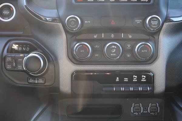 Finished in a sleek Gray exterior over a premium Black leather interior, this RAM Big Horn comes loaded with features including automatic headlights, power door locks, power windows, power side mirror adjustments, cruise control, dual-zone climate control, heated front seats, infotainment system, Bluetooth connectivity, backup camera, and premium alloy wheels—providing comfort, utility, and sophistication in one tough package.