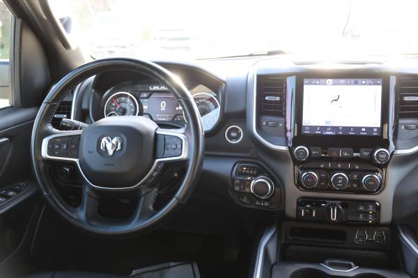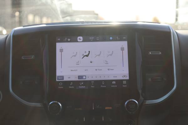 Finished in a sleek Gray exterior over a premium Black leather interior, this Laramie Black Widow includes automatic headlights, remote start, heated and ventilated power front seats, dual-zone climate control, touchscreen infotainment, Apple CarPlay/Android Auto, Bluetooth connectivity, backup camera, and premium alloy wheels.