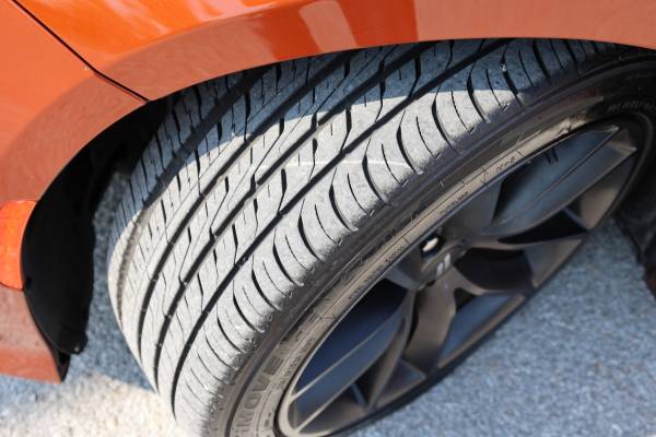 Finished in a striking Orange exterior paired with a comfortable Gray cloth interior, this R/T trim comes equipped with automatic headlights, power door locks, power windows, power side mirror adjustments, heated power front seats, dual-zone climate control, infotainment system, Bluetooth connectivity, backup camera, navigation system, cruise control, and premium alloy wheels—offering a performance-inspired interior with modern convenience.
