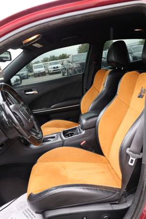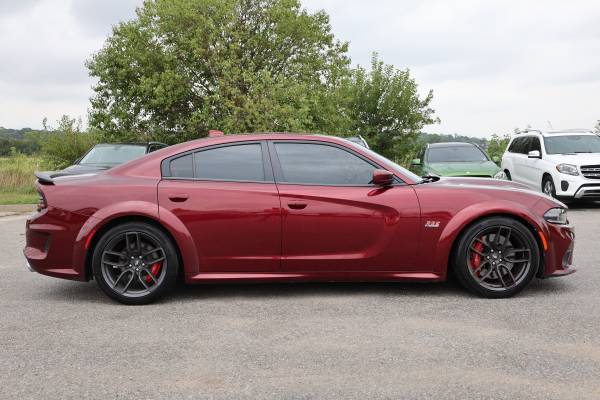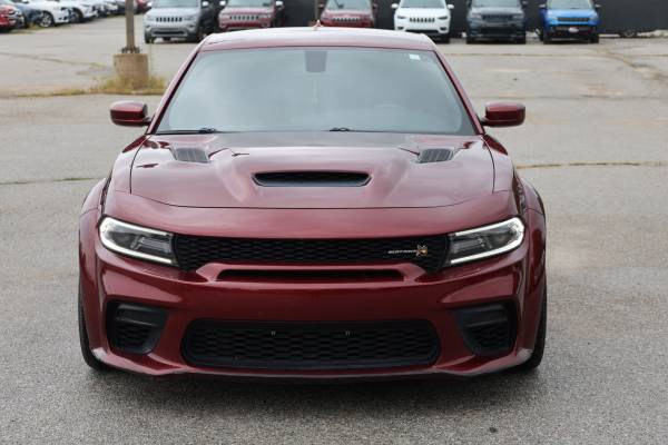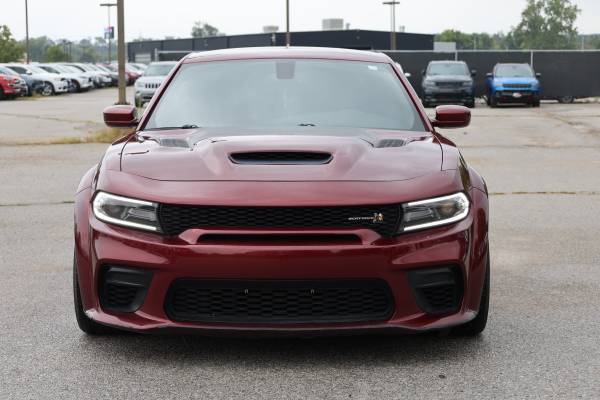 Our 2020 Dodge Charger Scat Pack Widebody Sedan is fast, mean, and looks fantastic in Maroon! Featuring a 6.4 Liter HEMI V8 that offers 485hp matched to a paddle-shifted 8 Speed Automatic transmission for spectacular runs to 60mph in 4.3 seconds. With 43,000 miles on the odometer, this Rear Wheel Drive Charger is ready for the track, too, with a performance suspension, Bilstein adaptive dampers, and Brembo brakes, and it scores nearly 24mpg on the highway. A bold body kit gives our Charger an intimidating presence with LED lighting, a performance hood, 20-inch alloy wheels, black-tipped dual exhaust outlets, and Satin Black accents like a one-piece spoiler.