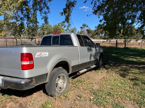 2004 Ford F-150 Fx4. $1500 OBO. This truck ran well this past summer, but now it does not start due to an electrical issue. You will need to tow it/haul it away. It also has an exhaust leak; 2 bolts on the passenger side of the manifold are broken. 4x4 Hi works, low does not engage. Engine was new at about 135000 miles and is very strong. The receiver hitch is rusted out and needs to be replaced. The radio is an aftermarket radio, but it shuts off due to some electrical issue. Rust around the corners of the box and rocker panels. In the past 50,000 miles, it has had a new dashboard instrument cluster and a new steering rack. Comes with one used spare tire in fair condition. Cash only.