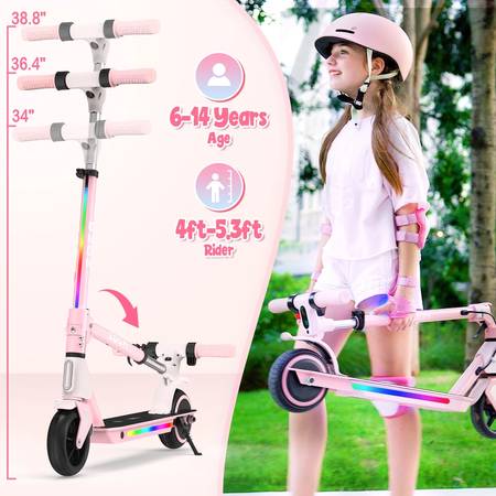 ZDZA Electric Scooter 25mph, for Kids with LED Light, Adjustable Handlebar Pink 1 month old https://youtu.be/nc3RrOVA3BA $80
