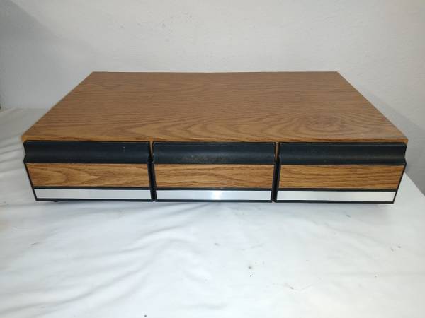 Vintage 1980s 36 VHS Cassette Storage Case Video Tape Holder WAL-MART brand - Made in Taiwan 3 Drawers Rigid Plastic frame / Faux Wood finish Measures: 26" W x 16" D x 6" H EXCELLENT CONDITION -...