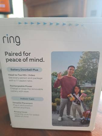 New/Never out of the box Ring, 2 pcs security set (doorbell unit and indoor camera).