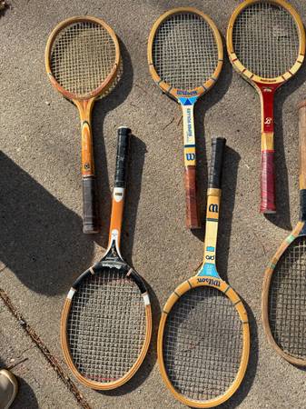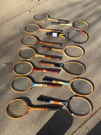 Assortment of vintage tennis rackets. $20 each or $150 for all