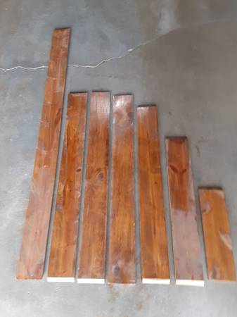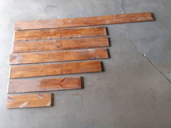 Pine boards in various lengths. All are 1x6. Approximate lengths are: one @ 6'; three @ 4'; one @ 3.5'; one @ 32"; one @ 18".