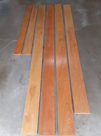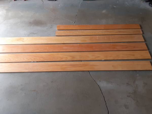 Solid oak boards. A few scratches but mostly in good condition. They have been staind and varnished. Three 1x8x10'; One 1x8x9'; Two 1x6x6'. $30 each for the long ones, $15 each for the short ones....
