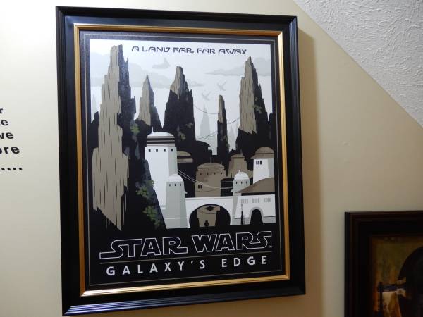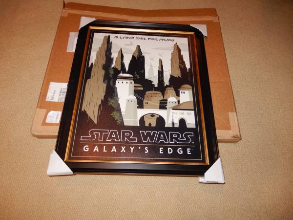 A must have for a Star Wars Fan! Large 26x30 Frame Print directly from Disney. Depicts The Galaxy's Edge Star Wars area at Disney. Original shipping box. Was only available directly at Disney World.