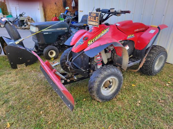 I am selling my 2000 Polaris 2 stroke 400cc with 42 inch Polaris mounted blade. It has working head lights and tail light, newer rear tires and clutch drive belt. Everything works well and it can be operated in 2 or 4 wheel drive. It gets around great in the snow and saves your back from shoveling. Selling it because I am 76 years old and living in a assisted living center and can not operate it anymore. My wife used it a lot but her health has stopped her now. It might need a new battery. $2000 CASH buys it. Phone Richard at show contact info