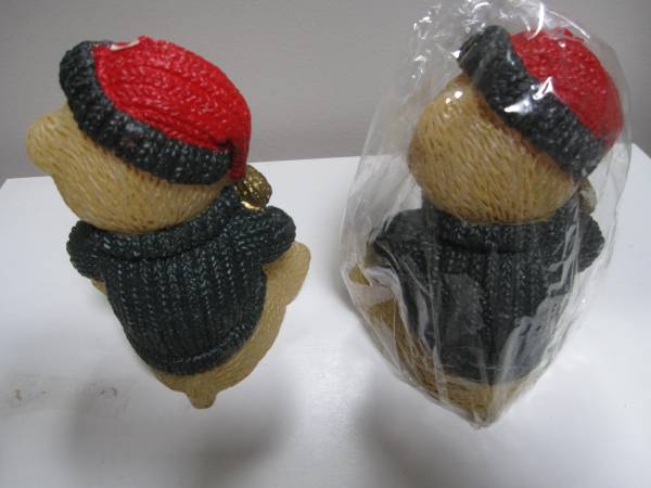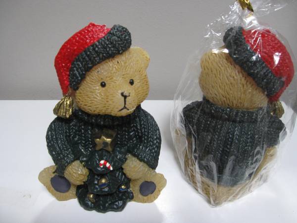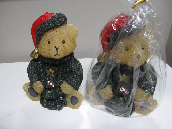 New very cute Christmas bear candles. 6" tall and about 2 1/2 at bottom. Send your phone #. Both for$5.00. Send your phone # if interested.