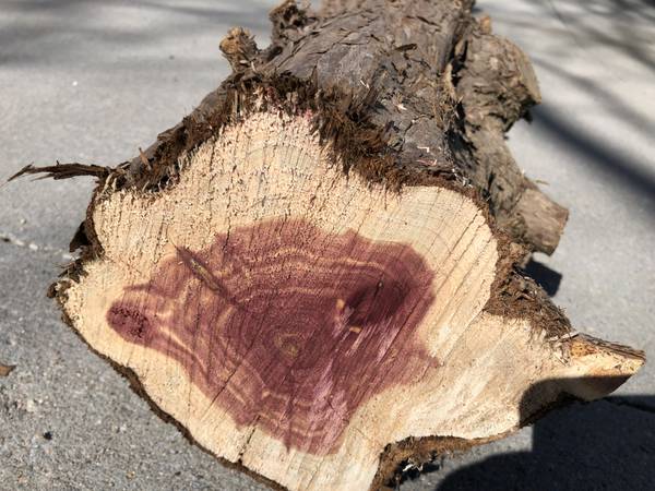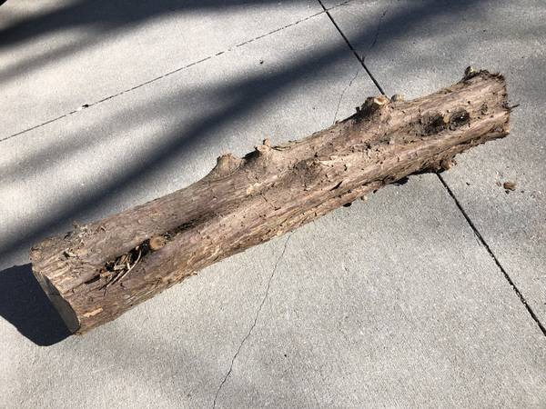 This 4’ long length Wood Tree Log is raw, natural / organic, knotty, with no sealers or finishes. Most of the bark is intact. I have cut a few smaller pieces from this log and they had beautiful heart wood inside! Great for cutting into smaller pieces to turn on a lathe and other arts and crafts projects with fine heartwood.